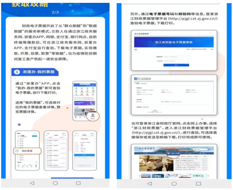 2.10月10日后可进浙里办APP(先下载安装)“我的票据”下载、打印电子票据,也可登录浙江财政票据管理平台下载、打印电子票据。