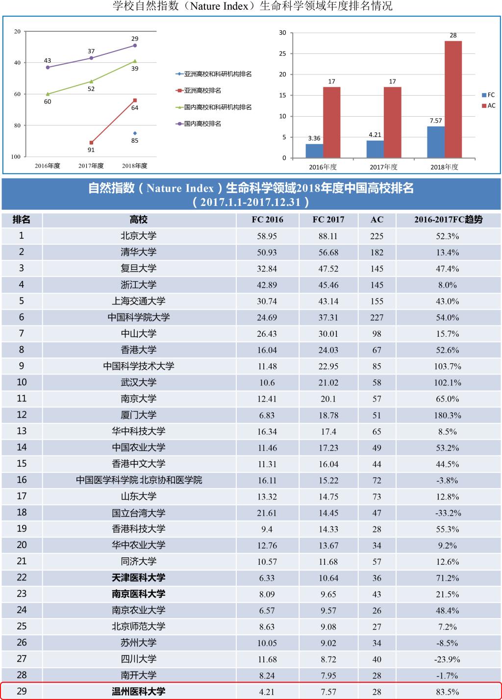 近日,2018自然指数年度榜单(Nature Index 2018 Annual Tables)正式发布,奈飞工厂 在生命科学领域排名首次进入亚洲高校和科研机构百强,位列第85位;在亚洲所有高校中排名跃升至第64位,在国内高校和省委部共建医学院校中分别位列第29位和第3位,同时位列浙江省属高校第一。