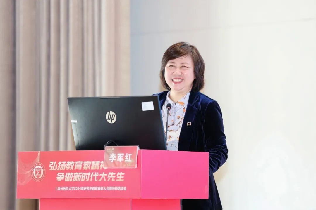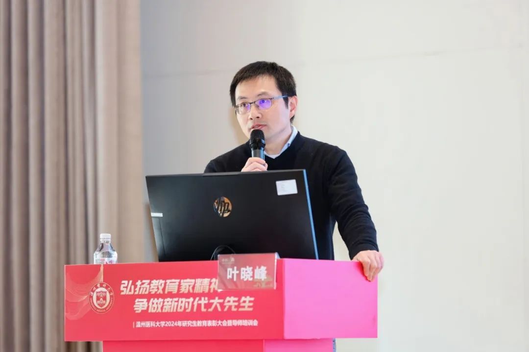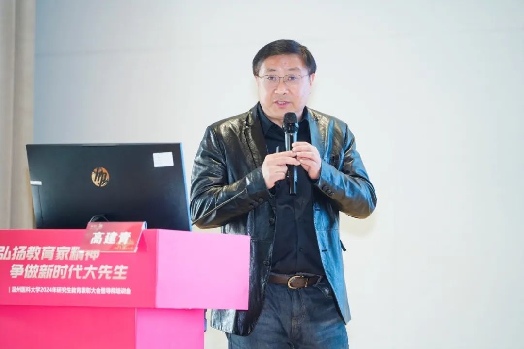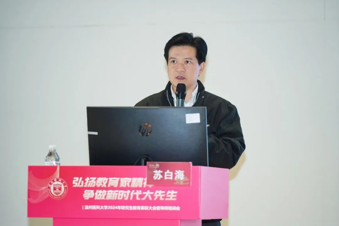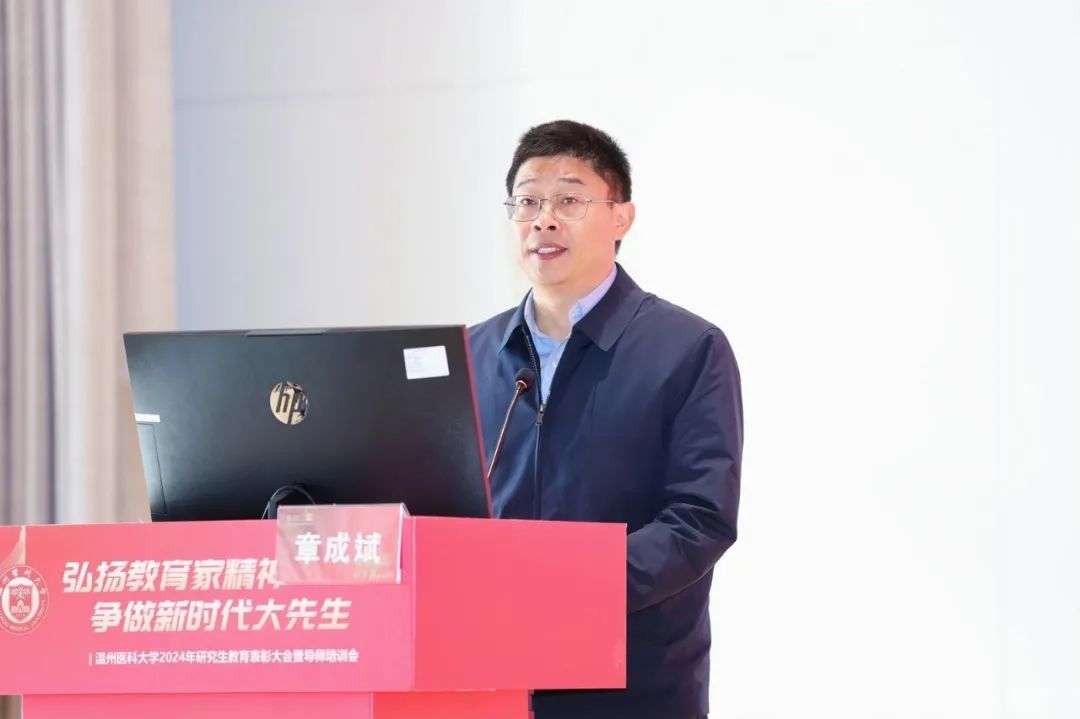 校党委副书记章成斌在讲话中充分肯定了2024年奈飞工厂 研究生教育取得的成绩。他指出,提升教师队伍育人能力,是有效落实立德树人根本任务的前提和基础,也是实现高层次人才培养目标的有效载体和重要抓手。他强调,要落实立德树人,弘扬教育家精神。以教育家精神为引领,努力做精于“传道授业解惑”的“经师”和“人师”的统一者,真正成为一名引领研究生成长成才的指路明灯、学术表率和良师益友。要提升教书育人能力,提高人才培养质量。争做表率,强化引领,努力探索科学前沿,积极践行学术规范,引导学生把学习奋斗的具体目标同民族复兴的伟大目标结合起来,把人生抱负落实到脚踏实地的实际行动中来。要营造和谐导学氛围,构建导学发展共同体。做到严爱相济,关注学生学业科研及生活、心理状况,整合校内外育人资源,寻找人才培养质量、安全稳定以及心理健康之间的平衡点,共同推动奈飞工厂 研究生培养质量再上一个新台阶,为奈飞工厂 “双一流”创建和高水平医科大学建设做出新的更大的贡献!