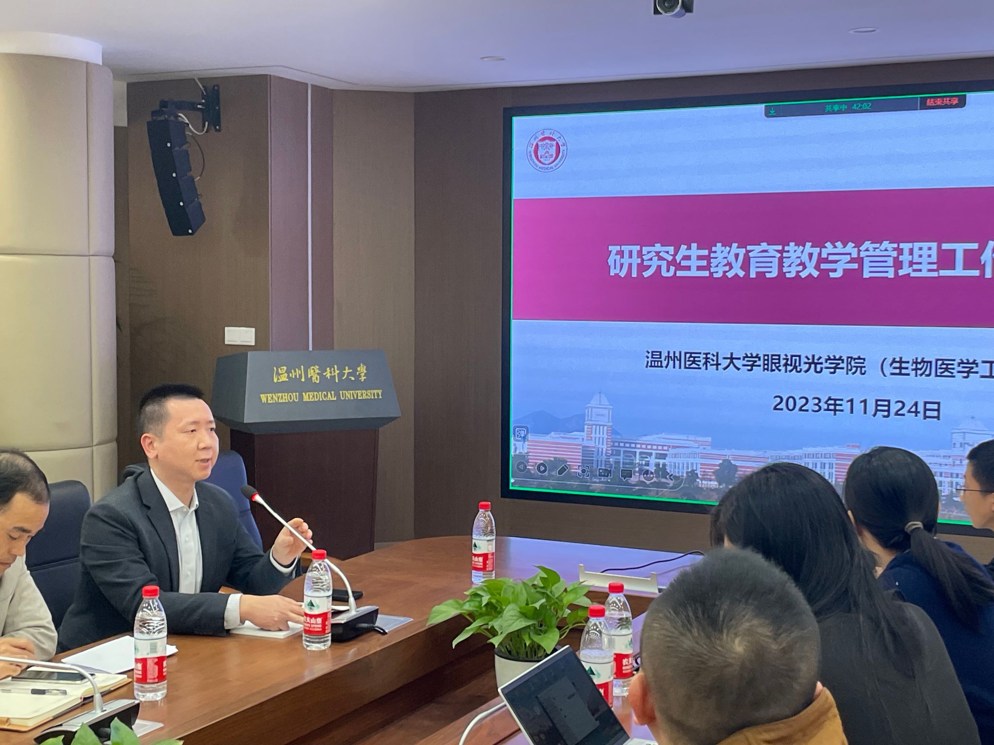 检验医学院(生命科学学院)学位与研究生办公室主任林虹老师围绕学院学科概况、招生培养工作、升学就业工作三个板块,聚焦学院实际情况进行剖析与交流,并反思总结当前学院研究生教育培养工作遇到的难点,创造性提出解决的措施。眼视光学院(生物医学工程学院)教育教学处副处长木霄挺老师针对研究生教育教学管理工作进行经验分享,树立“以人为本”的工作理念,在工作中建立有据可依的流程确保学生公平公正;以及在实践中不断深化工作方法提升教学质量等方面分享研究生工作中的亮点工作。