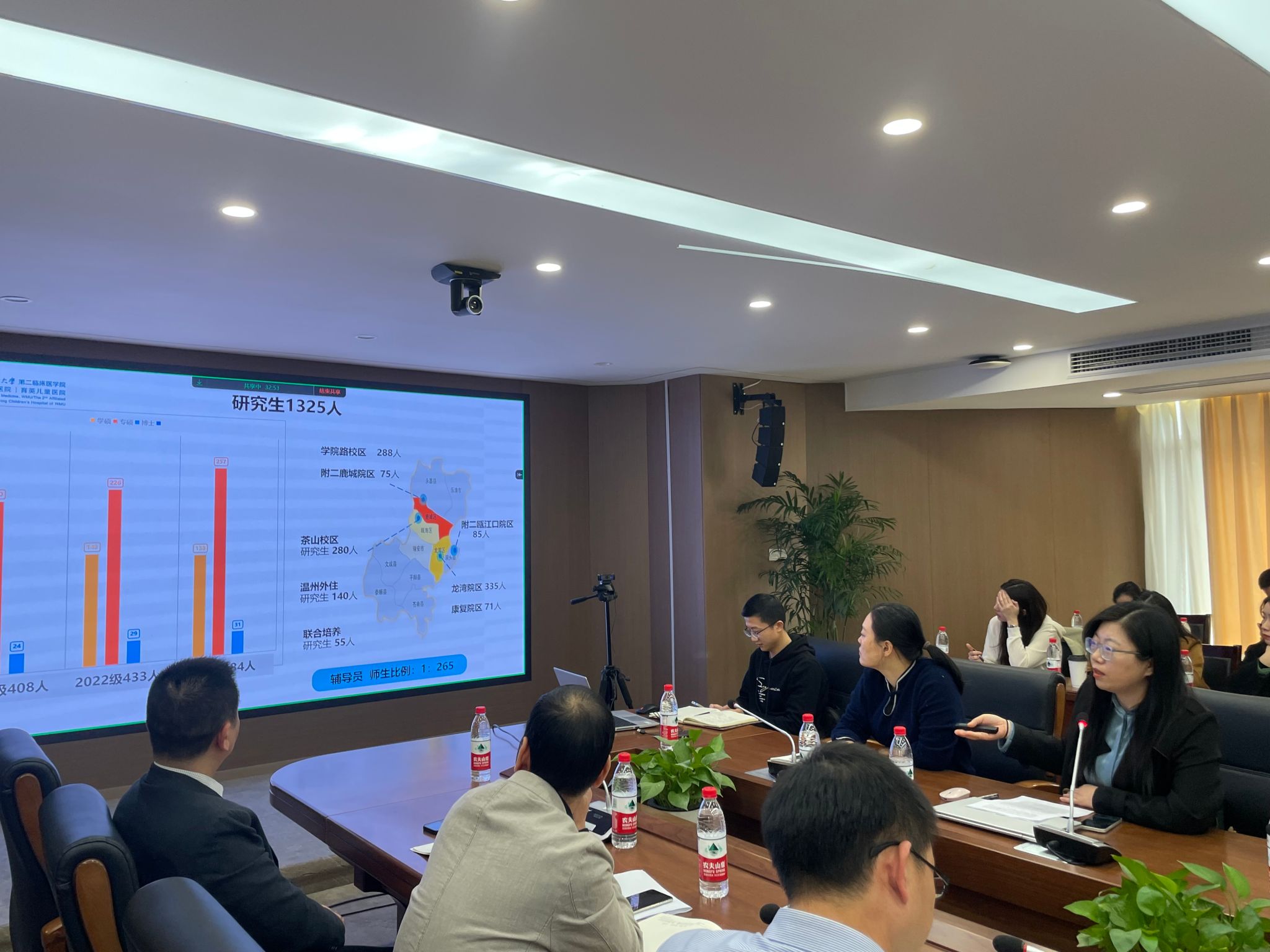 会议包括典型单位经验汇报、互动交流、下阶段工作部署。在典型单位经验交流环节,第一临床医学院(信息与工程学院)研工办主任林建锋老师围绕新学期研究生层面存在的问题与困难,提出制度防范、党建引领、医脉传承、实际创新等方面将“促发展、办实事”落实到服务研究生之中。第二临床医学院研工办主任李海哲老师在详细地分析如今研究生的诉求下,通过“三结合、三提升”构建新时代研究生管理模式结合学生需求,刚柔并济,规范化管理与人文关怀相结合;上下同行,统筹管理与自治管理相结合;行稳致远,科研育人与职业发展相结合,有力地搭建了研究生管理模式。