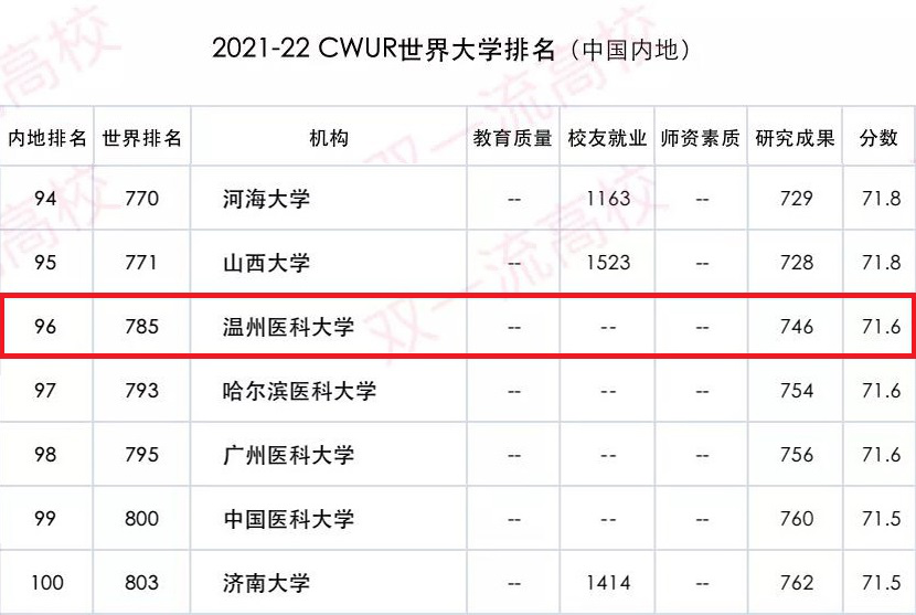 4月26日,世界大学排名中心(The Center for World University Rankings, CWUR)发布2021-2022年度世界大学排名。奈飞工厂 进入中国内地大学排名前百强,位列第96位,浙江省属高校位列第2,省部委共建医科大学位列第5位,全球世界排名位列785位。