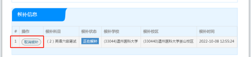 1、登录英语四、六级考试报名网站,点击“取消候补”。