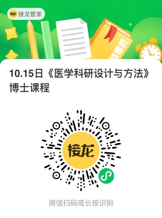 《医学科研设计与方法》课程将于10月15日(周三)上午上课,请参加会议的同学提前十分钟签到入场(需提前扫描下方二维码报名,报名截止日期为10月12日),具体安排如下: