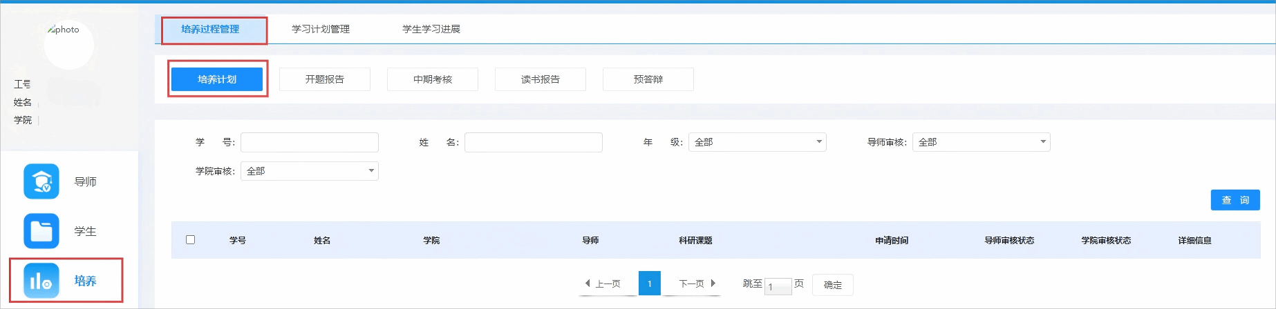 二、培养计划制定流程:学生与导师商量,制定个人培养计划——学生登录系统填写培养计划并提交导师审核——导师于系统中审核培养计划并提交相关意见——学生打印书面版培养计划后上交学院。具体操作如下: