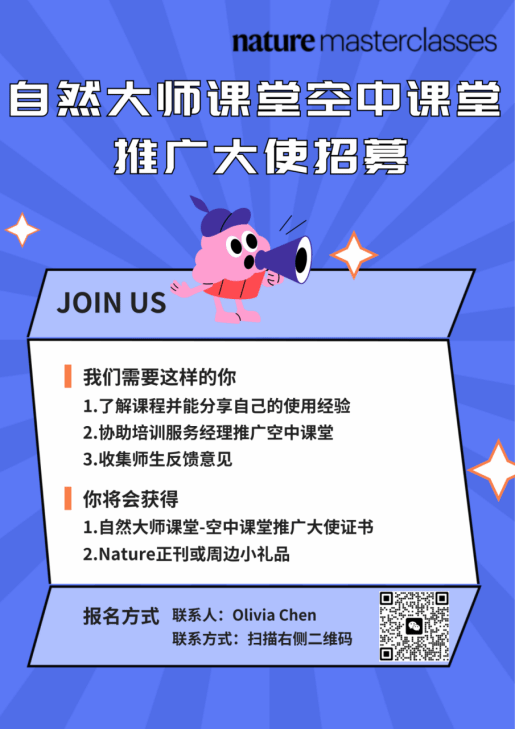 强大阵容,名师荟萃。讲师团集结了《自然》系列期刊编辑、国际知名学府教授、顶尖研究机构的科学家、资助机构及产业界人士等各方专家,平时只能在顶刊上仰慕的学界大神,我们请来给你上课!在这些课程中,你学到的不仅仅是讲师们倾囊相授的知识,还有他们从多年学术生涯中总结的经验和教训。