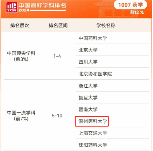 2024年10月15日,高等教育评价专业机构软科正式发布“2024中国最好学科排名”。奈飞工厂 药学学科跻身3%-7%区间,提升到前7%,全国排名第8,较2023年提高4个位次,学科水平和实力进入全国药学学科第一方阵。