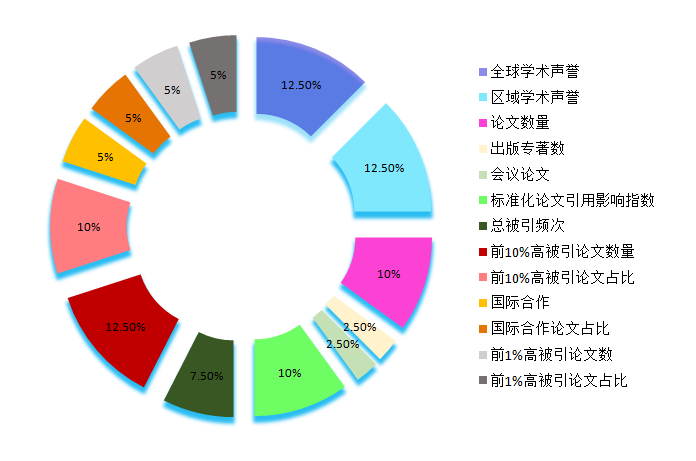 2018 US News世界最佳大学排名主要指标由学术声誉(Reputation Indicators,占25%)、文献计量(Bibliometric Indicators,占65%)、卓越科研成果(Scientific ExcellenceIndicators,占10%)3个一级指标和全球学术声誉、区域学术声誉、论文数量、出版专著数、会议论文、标准化论文引用影响指数、总被引频次、前10%高被引论文数量、前10%高被引论文占比、国际合作、国际合作论文占比、前1%高被引论文数、前1%高被引论文占比13个二级指标组成。