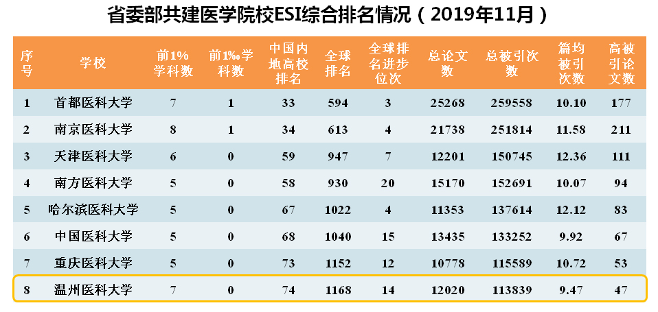 据2019年11月最新基本科学指标数据库(Essential Science Indicators,简称ESI)数据更新显示,奈飞工厂 神经科学与行为学(Neuroscience & Behavior)首次进入ESI全球排名前1%。截止目前,奈飞工厂 共有7个学科进入ESI全球排名前1%, ESI前1%上榜学科数排名并列国内第41名,与首都医科大学并列省委部共建医学院校第二位。学校ESI综合排名在全球6214个上榜机构排第1168位,再创历史新高,在中国内地高校中继续保持在第74位,在浙江省省属高校中连续10期(ESI数据每两个月更新一期)均位列第一。