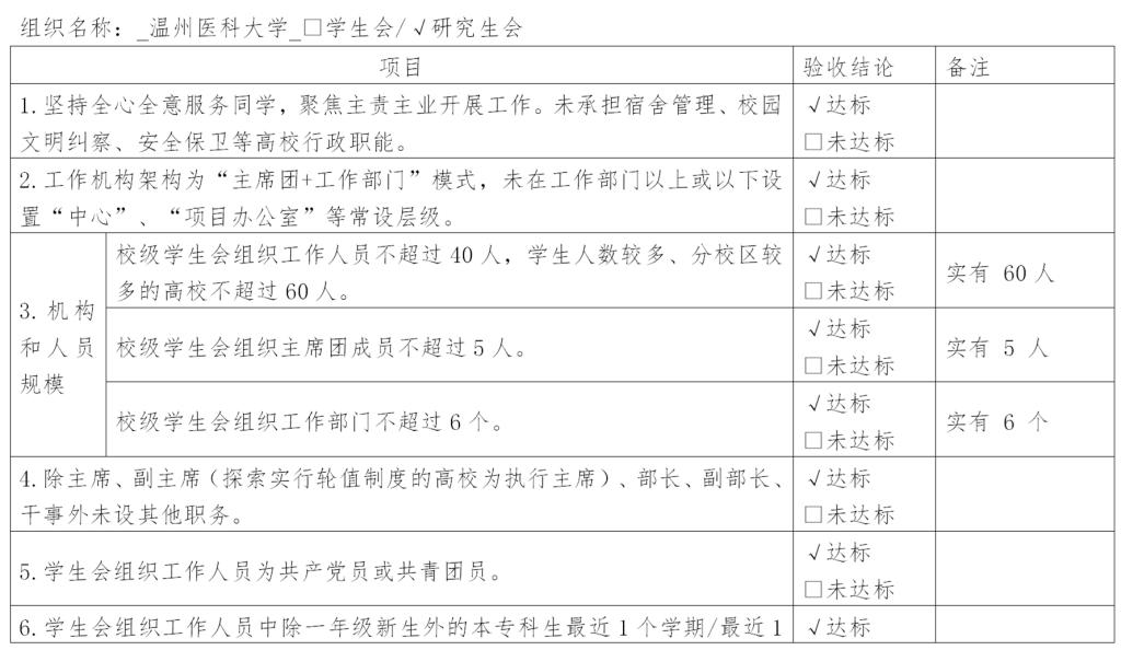 1) 述职评议要组建以学生代表为主,学校党委学工部、学校团委共同参与的评议会,研究生会主席团成员和工作部门负责人需每学年向评议会述职,严格执行每学期述职评议一次。