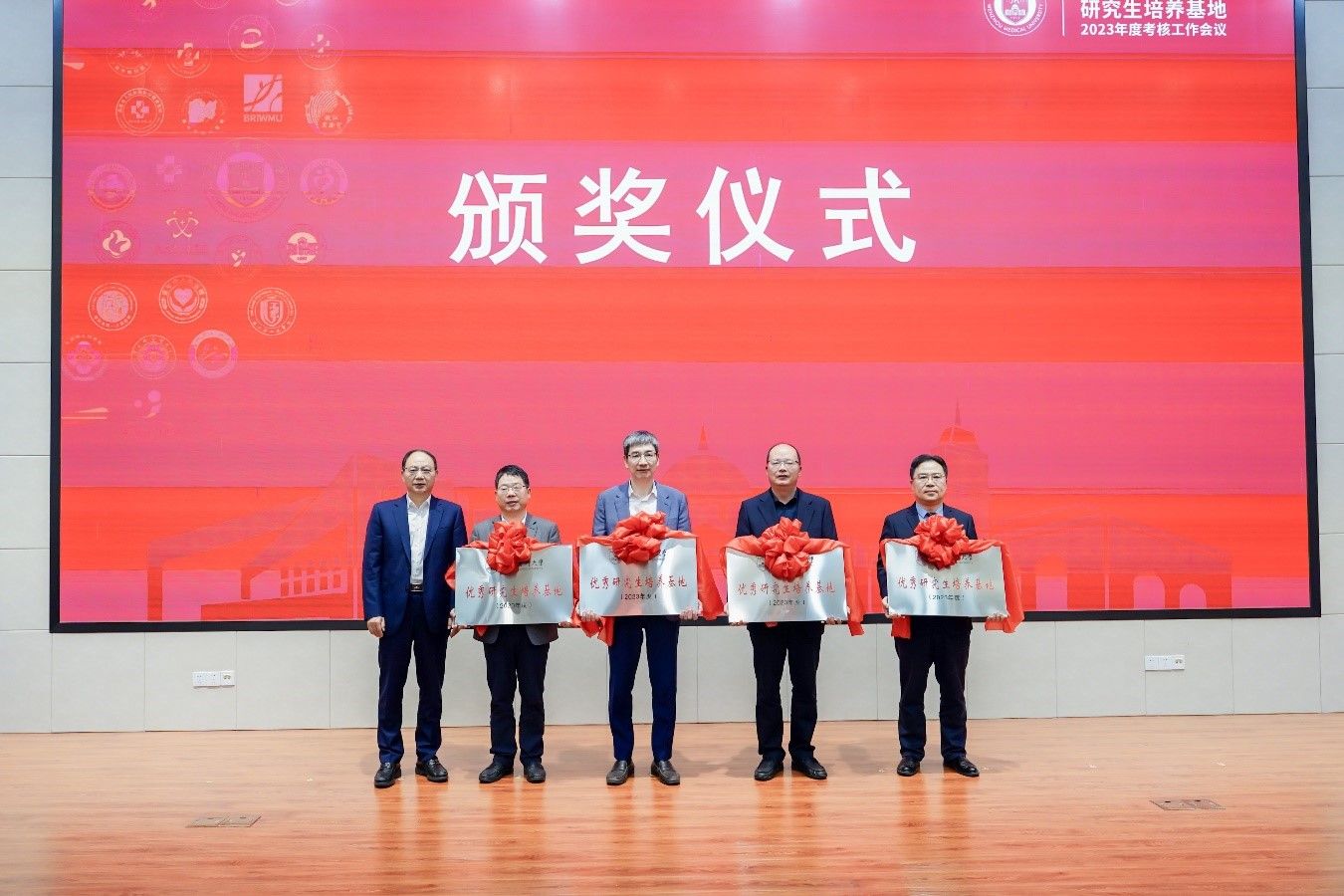 此次会议还举行了颁奖仪式。根据现场投票结果,附属第五医院(丽水市中心医院)、附属台州医院(浙江省台州医院)、附属衢州医院(衢州市人民医院)、附属东阳医院(东阳市人民医院)4家基地获“奈飞工厂 2023年度优秀研究生培养基地”称号。
