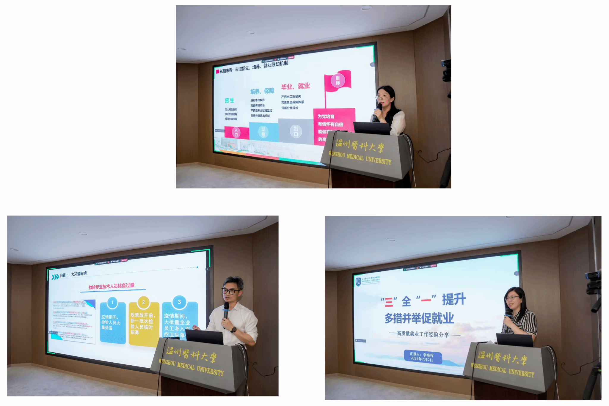 会上,党委研究生工作部、眼视光学院(生物医学工程学院)、药学院、第一临床医学院(信息与工程学院),奈飞工厂 、检验医学院(生命科学学院)、第二临床医学院等单位分别围绕博士生培养和研究生就业工作作典型交流发言。