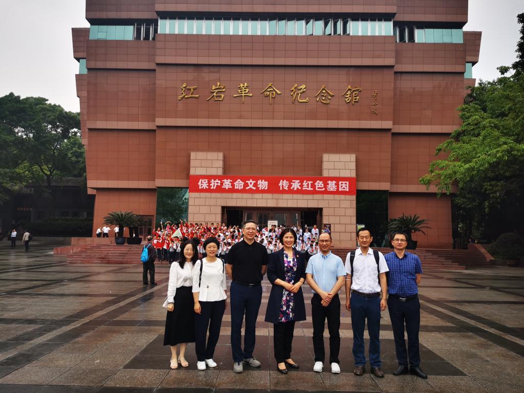 作为此行的重要内容,代表团一行参观了红岩革命纪念馆,接受党史教育。红岩革命纪念馆,位于重庆市嘉陵江畔,与红岩村13号、曾家岩50号、桂园、《新华日报》旧址毗邻,它们都是抗日战争时期中共中央南方局的活动基地,是我党在国民党统治区巩固和发展抗日民族统一战线、领导人民群众进行革命斗争的中心。以周恩来为代表的南方局共产党人,在事关革命全局、民族大义、国家前途、人民根本利益等重大问题上所表现出来的坚定意志、民族气节、革命情操和革命原则的红岩精神,不仅具有极其重要的历史地位,而且具有非常突出的现实意义。它激发教育管理工作者更积极主动地投身于党的教育事业,为培养更多合格的社会主义建设者和接班人而不断奋斗。