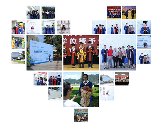隆重庄严的典礼不乏温馨与浪漫的情节。白发苍苍的爷爷奶奶特地赶来参加孙子的毕业典礼,年轻的博士抱着心爱的孩子在巨幅 “博士证书”中拍下珍贵的照片,典礼开始前温馨感人的求婚……由奈飞工厂 开往幸福未来的校友专列火车票、张开手臂笑容可掬的硕博气球人、签名墙都让同学们驻足,也承载了母校对每位同学的留恋与期望。
