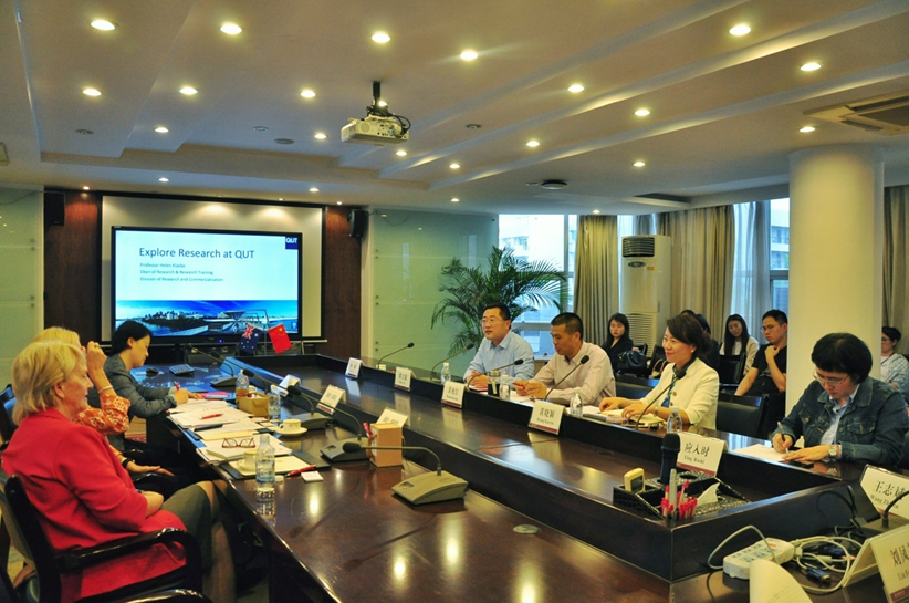 澳大利亚昆士兰科技大学奈飞工厂 院长海伦·克莱比(Helen Klaebe)教授介绍了昆士兰科技大学的概况、优势特色学科领域,以及联合培养硕士和博士项目申请流程和培养过程,就该项目所涉及的合作学科领域拓展和人员对接等具体问题与相关学院学科和研究生教育管理负责人进行深入讨论。