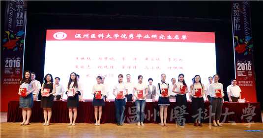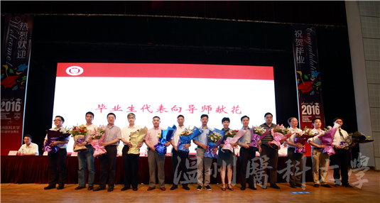 校领导为2016年毛江森院士奖学金及省校优荣誉称号获得者颁发荣誉证书。省级优秀毕业生向导师献花,以表达对导师辛勤培育的感恩之情。