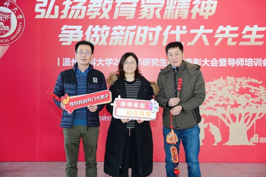 副校长金胜威等领导为教育部主题案例获奖教师、省级优秀学位论文指导教师、校级教学成果奖等研究生教育改革先进个人,以及省级研究生联合培养单位、校级研究生教育满意度先进单位等颁奖,并为新导师颁发聘任证书。博士生导师代表赵斐带领全体教师庄严宣誓。