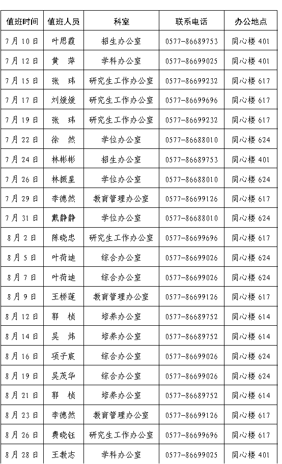 八、暑假值班表