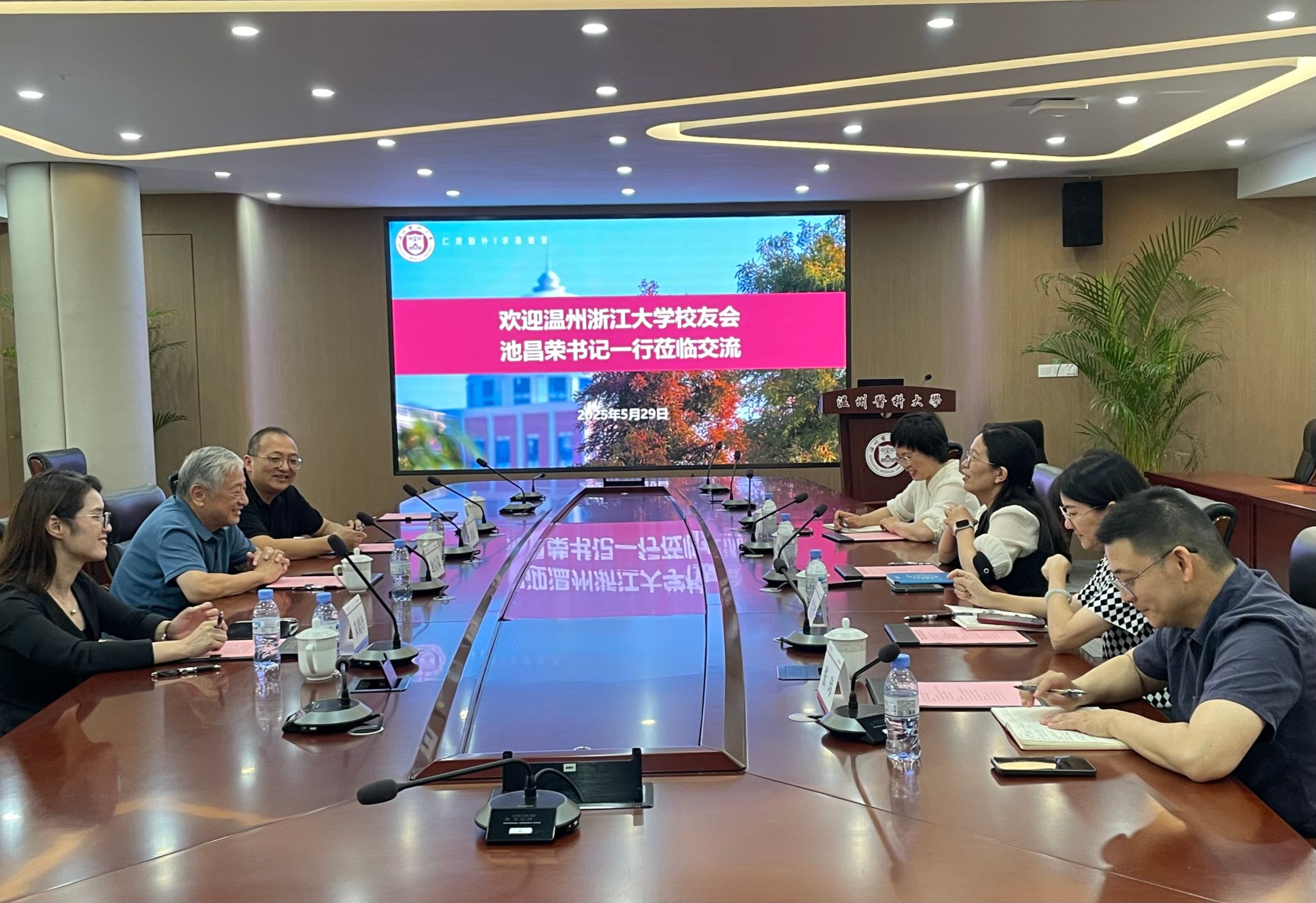 郑曼曼书记在欢迎致辞中系统阐述了学校办学历史沿革,重点分享了研究生教育特色、人才培养机制及学科建设成效。池昌荣书记详细介绍了温州浙大校友会组织架构与工作特色,希望通过党建联建平台有效整合校友资源与高校优势,助推人才集聚与医学教育高质量发展。