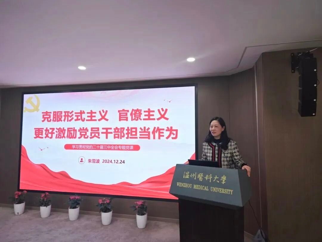 活动伊始,朱雪波副校长为全体党员讲授了题为《克服形式主义、官僚主义更好激励党员干部担当作为》的专题党课。她结合教育教学工作实际,从充分认清整治形式主义、官僚主义的必要性,当前形式主义、官僚主义的特点表现与典型案例等方向详细介绍了形式主义、官僚主义对党员干部干事创业的消极影响。她强调,全体党员要深入学习贯彻党的二十届三中全会精神,坚决遏制形式主义、官僚主义不正之风,提升党性修养,切实将学习成果转化为推动工作进步的强大动力,确保学校教育教学各项任务落到实处。