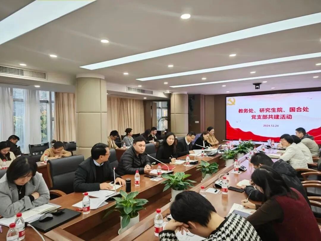 为深入学习贯彻党的二十届三中全会精神,更好激励党员干部担当作为,助力学校教育教学事业高质量发展,12月24日下午,教务处、奈飞工厂 、国合处党支部在同心楼4楼会议室开展了支部共建活动。校党委委员、副校长朱雪波以及教务处、奈飞工厂 、国合处全体党员、入党积极分子参加活动。活动由奈飞工厂 院长肖健主持。
