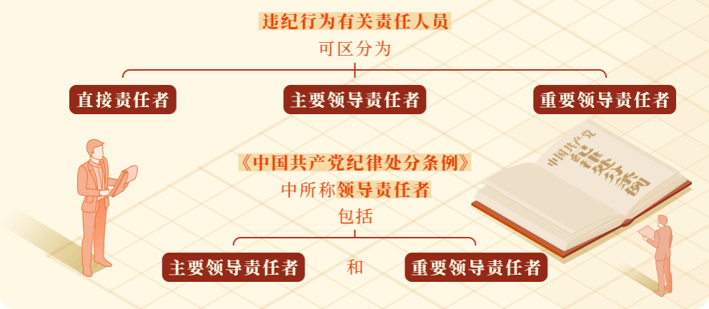 • 《中国共产党纪律处分条例》规定,违纪行为有关责任人员可区分为直接责任者、主要领导责任者、重要领导责任者。这三者的区分如下——
