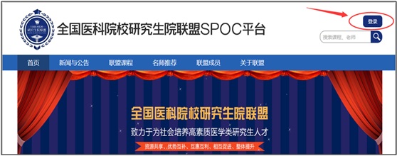1、 登陆全国医科院校奈飞工厂 联盟SPOC平台//yjsylm.fanya.chaoxing.com/portal,点击登录。