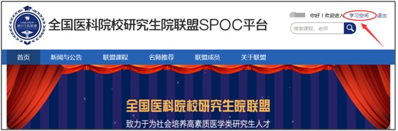 4、再次登陆成功后在页面右上方选择学习空间进入个人页面。